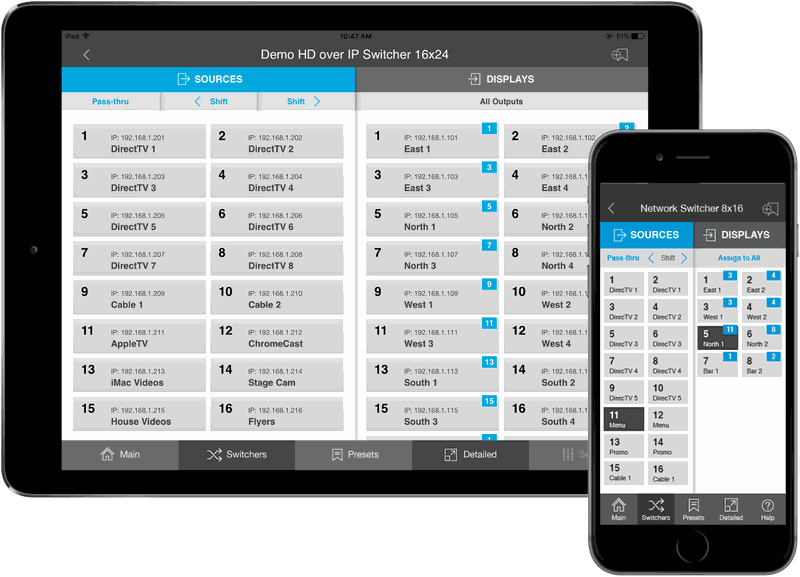 - Access & Control AV over IP systems with full matrix switching capabilities