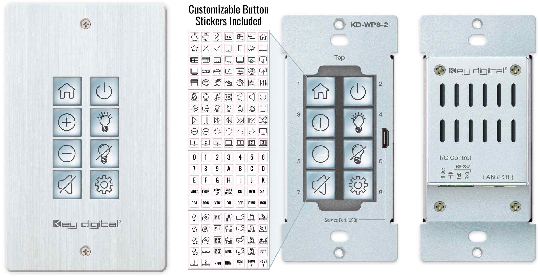 8 Button Web UI Programmable IP Control Wall Plate Keypad with PoE for KDPlug & Present™, Compass Control® Pro, and Third-Party Systems via Open API